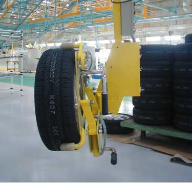 使用助力机械手,操作人员只需将轮胎放置在设备的夹具中,然后通过控制系统启动机械臂,机械臂将轮胎从夹具中取出并准确地安装在车轮上。